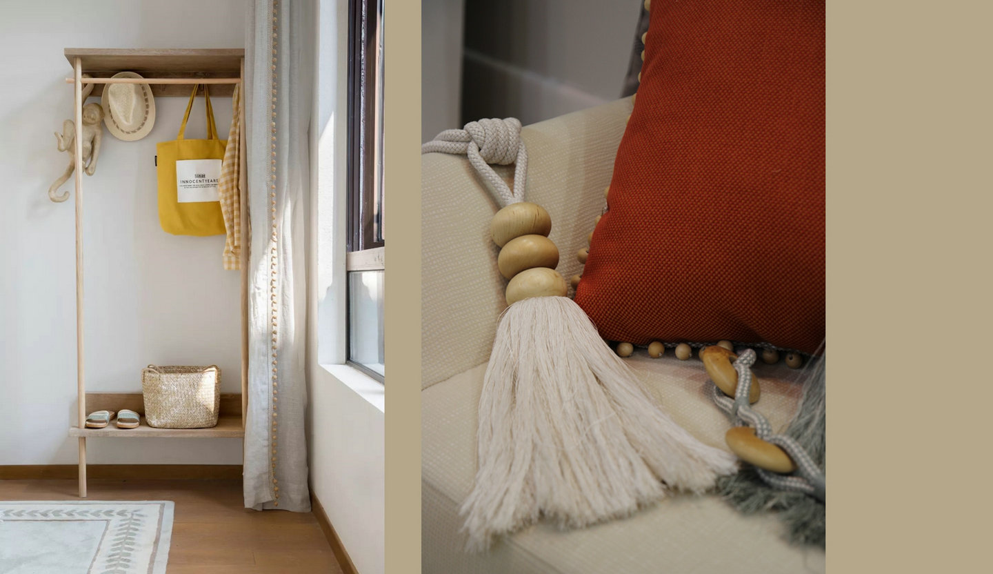 在色彩方面采用本真色彩,并將多種織造方式構(gòu)成豐富質(zhì)感,體現(xiàn)簡(jiǎn)約、質(zhì)樸的現(xiàn)代風(fēng)格。